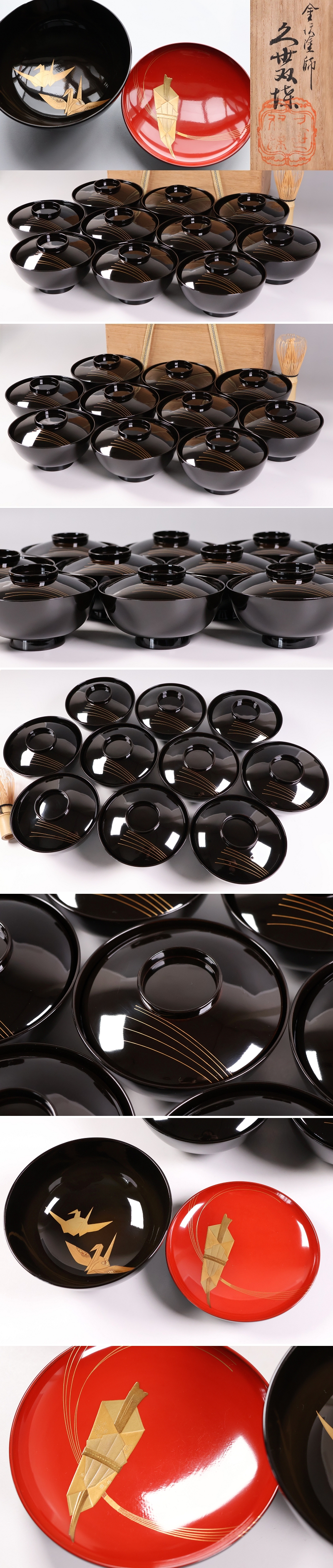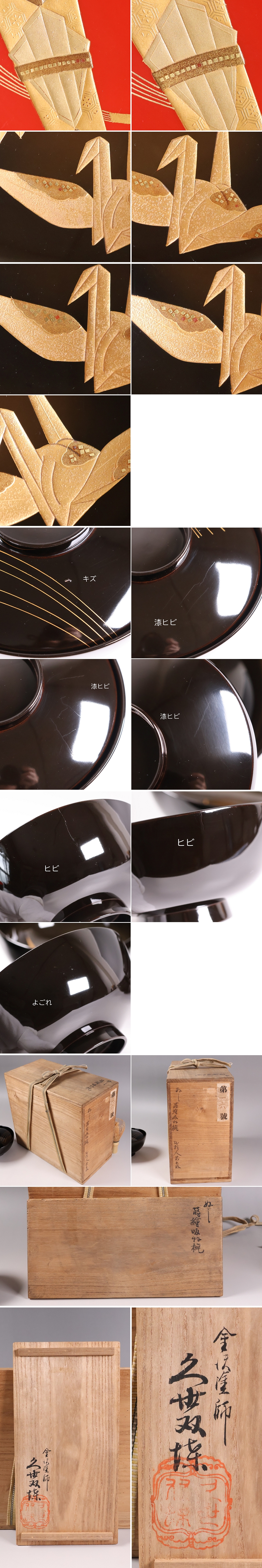 【MB179】金沢塗師 久世双〇 熨斗と折り鶴 金蒔絵 吸物椀 十客 天然木漆塗 漆芸 木製漆器 黒塗 朱塗 引盃 伝統工芸品 茶懐石 会席 慶事 收藏