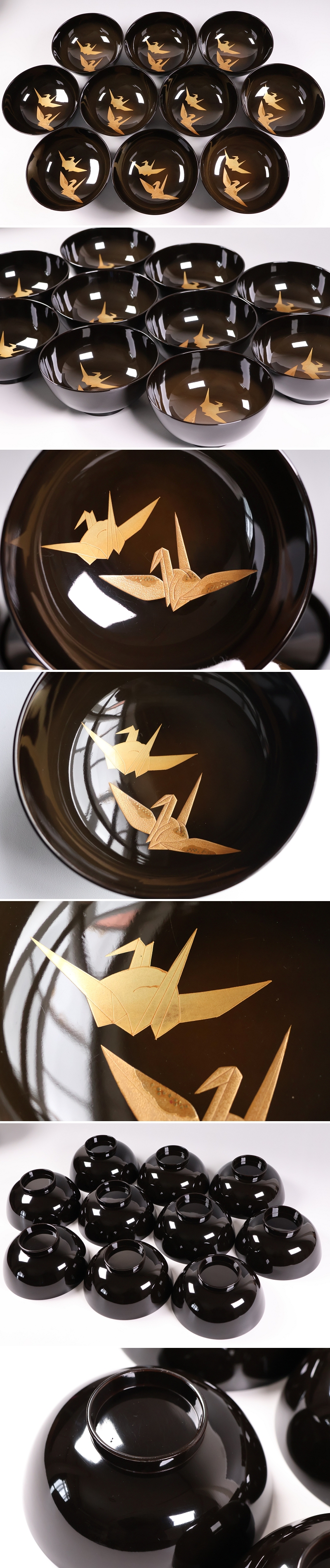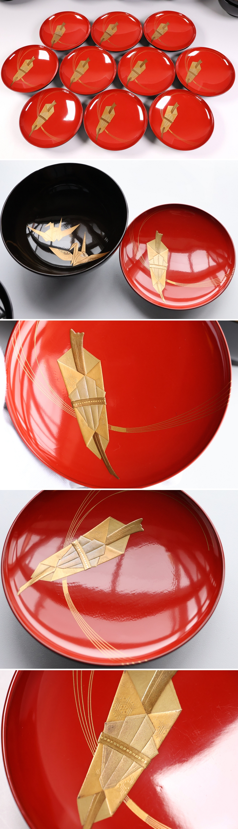 熨斗と折り鶴 金蒔絵 吸物椀 十客