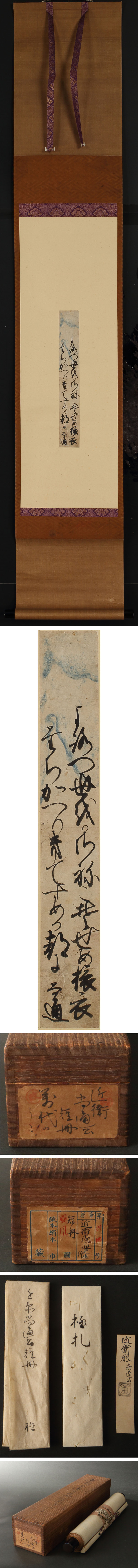 【模写】委託HK◇近衛尚通 打曇和歌短冊軸装 古筆了雪極(古短冊 古筆 堂上歌人 五摂家 書家 近衛流 尚通流 中世文学 国文学) 收藏