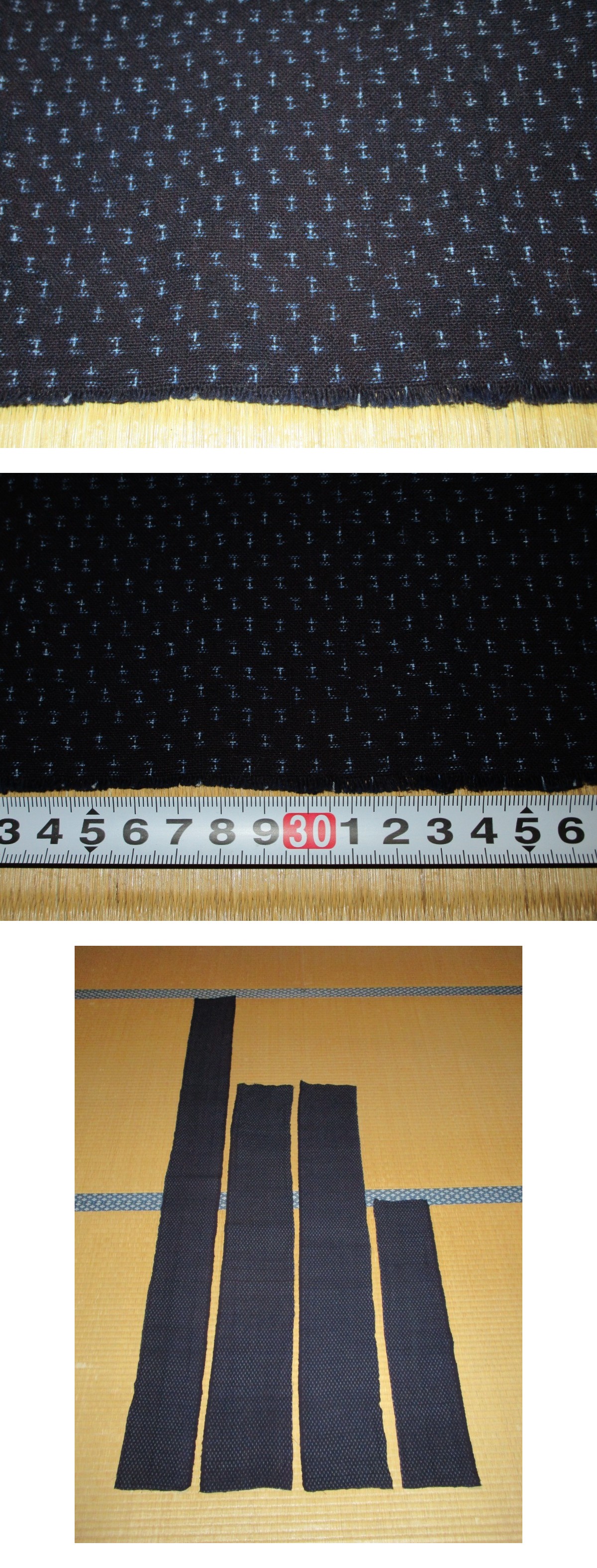 【昔古布】大正期 無傷で 美品 厚手の 藍染手織木綿 蜻蛉トンボ絣(小絣) 4点 (長合計469) リメイク材料 收藏