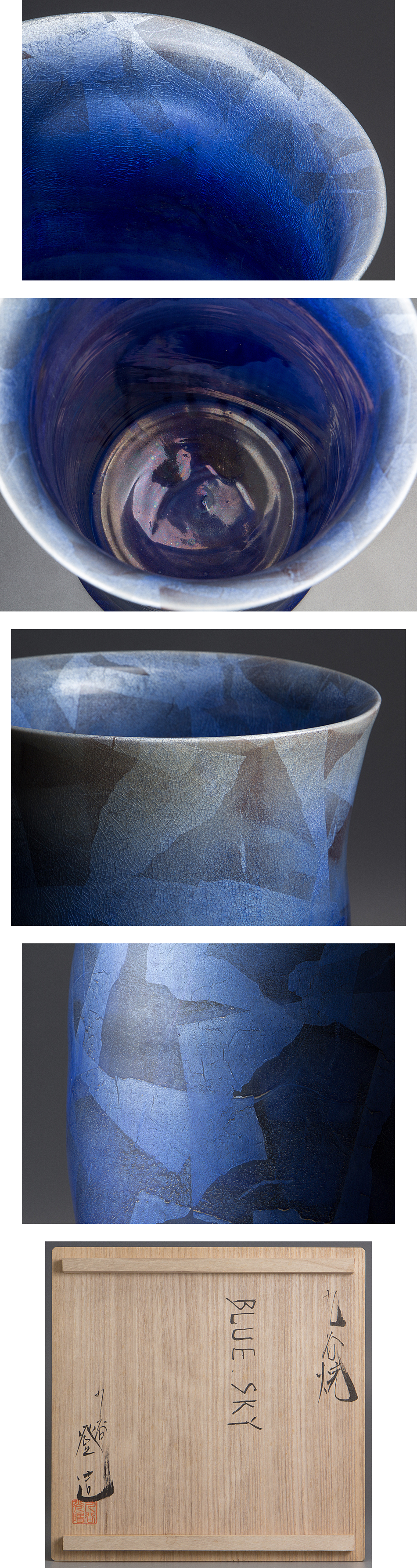 【五】九谷焼 山田登陽志 作 『BLUE.SKY』 花器 高57cm 重11kg 共箱 / 日展会友 石川県美術文化協会会員 日工会会員 伝統工芸士 收藏