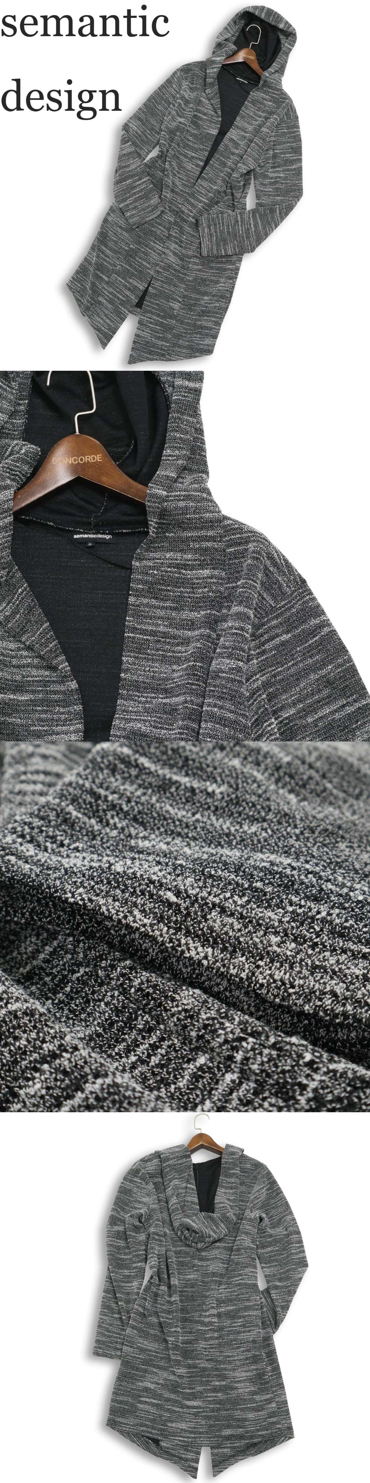 semantic design セマンティック デザイン 通年 ニット★ 杢調 ロング フーディー カーディガン 羽織り Sz.LL メンズ 收藏