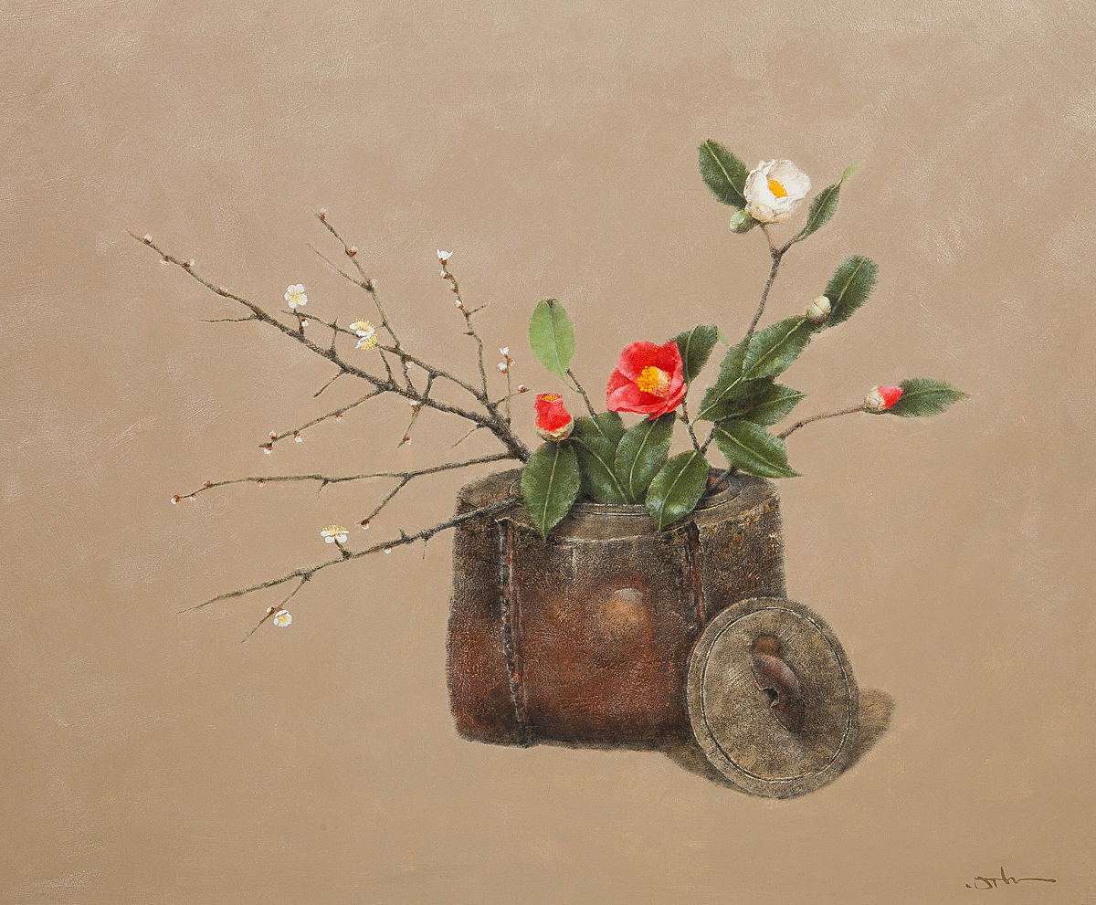 【1on1】真作 濱口清 『椿』 油彩 キャンバス 25号 額装 ■ 1950年大阪市生 無所属人気画家 全国主要百貨店個展 師:和気史郎 收藏