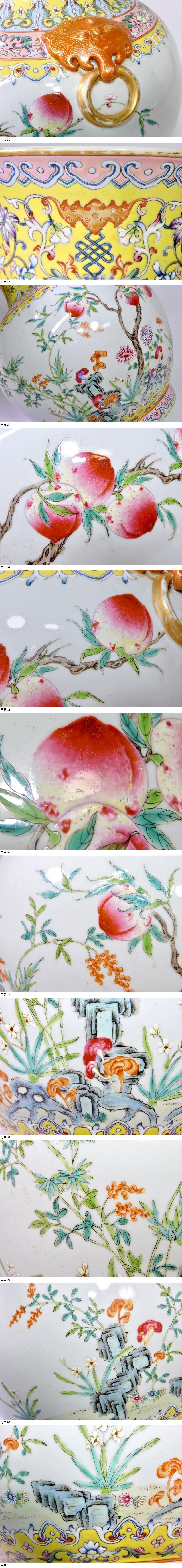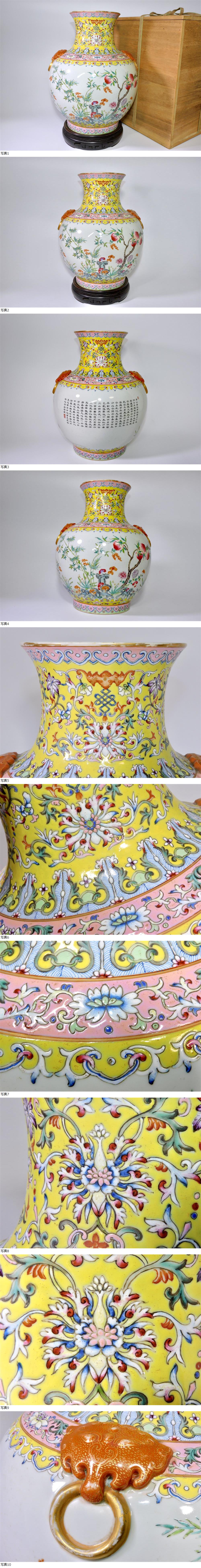 清時代 粉彩福寿詩文双耳大花尊 永慶長春在銘 台付 箱付 (九州依頼品)清 時代物 伝世品