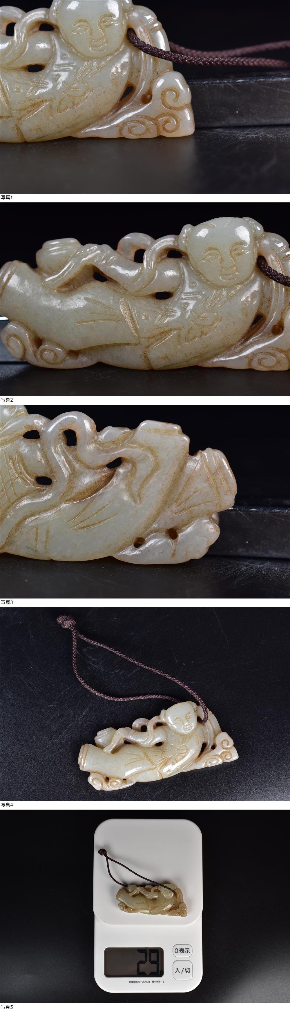 中国古美術 時代物 白玉 和田玉 彫刻 玉彫 唐子模様 根付 玉珮 唐物 中国古玩 骨董品 重さ約29g 收藏