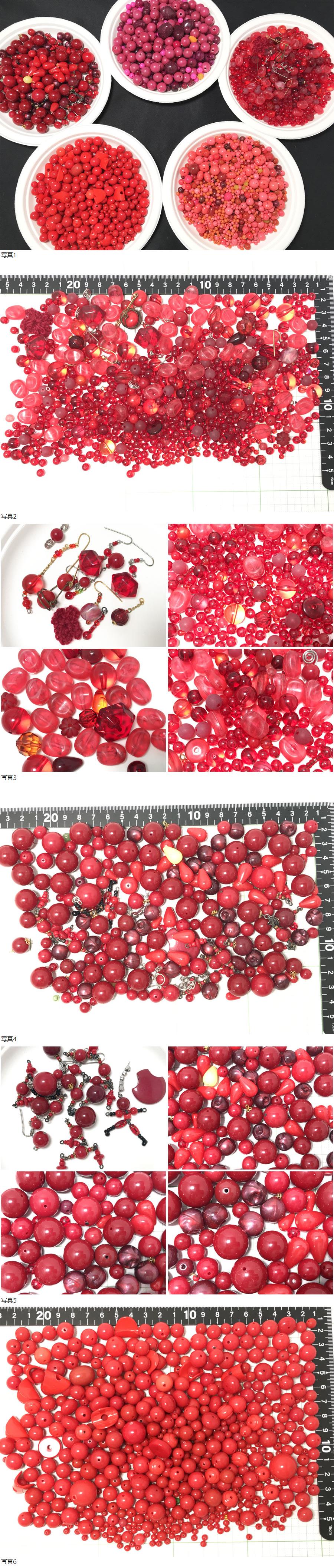 ◆ハンドメイド パーツセット ビーズ ガラスビーズ アクリルビーズ 天然石 パワーストーン 総重量約1024gレッド系他 店舗引上げ品 收藏