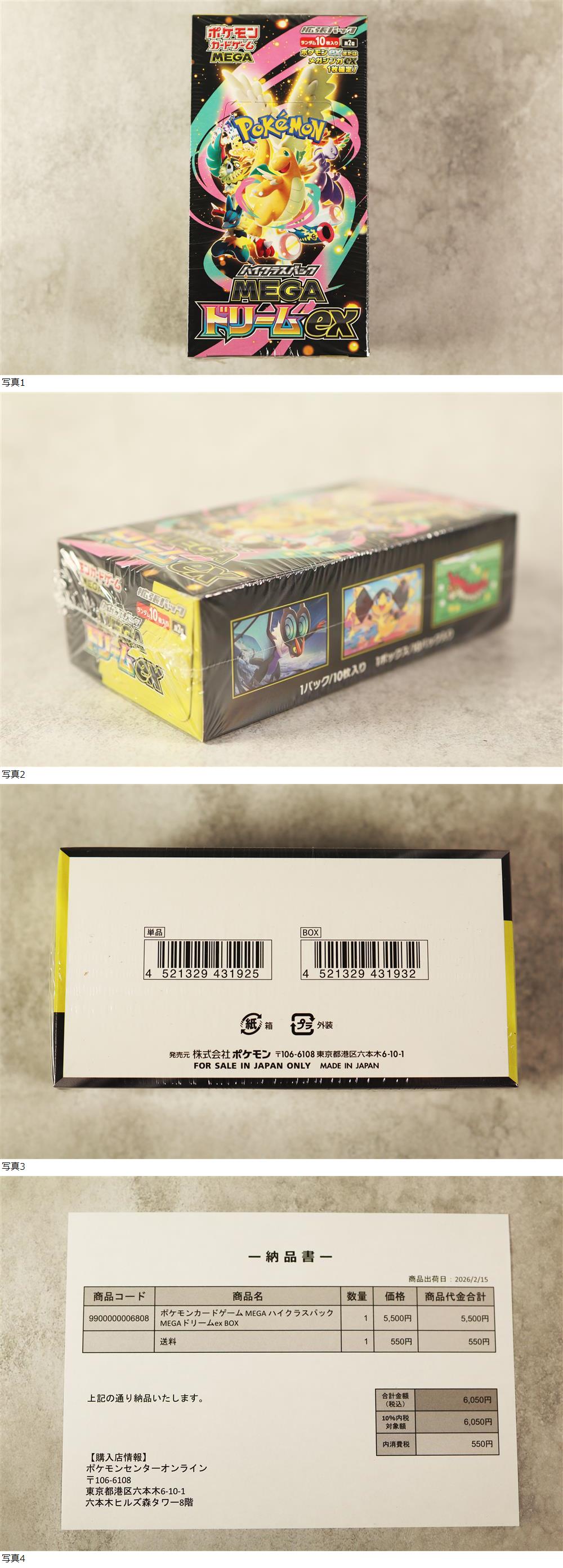 未開封 ポケモンカードゲーム MEGA ハイクラスパック MEGAドリームex BOX シュリンク付き の出品です。 ★状態:シュリンク付き新品未開封。ポケモンセンター購入品。 ★配送方法 :レターパックプラス にて発送いたします。※箱潰れを気にされる方はゆうパック60サイズでの発送も対応可能です。 ★完品をお求めの方は入札をご遠慮ください。 ★入金確認後、3日以内に発送いたします。 ★写真には写しきれない小キズやスレ等あるものとお考え下さい。 ★ご使用のモニター設定により色味が異なる場合があります。 ★ノークレーム・ノーリターンでお願いします。 ★ご入札後3日以内に決済を完了出来る方のみご入札下さい。