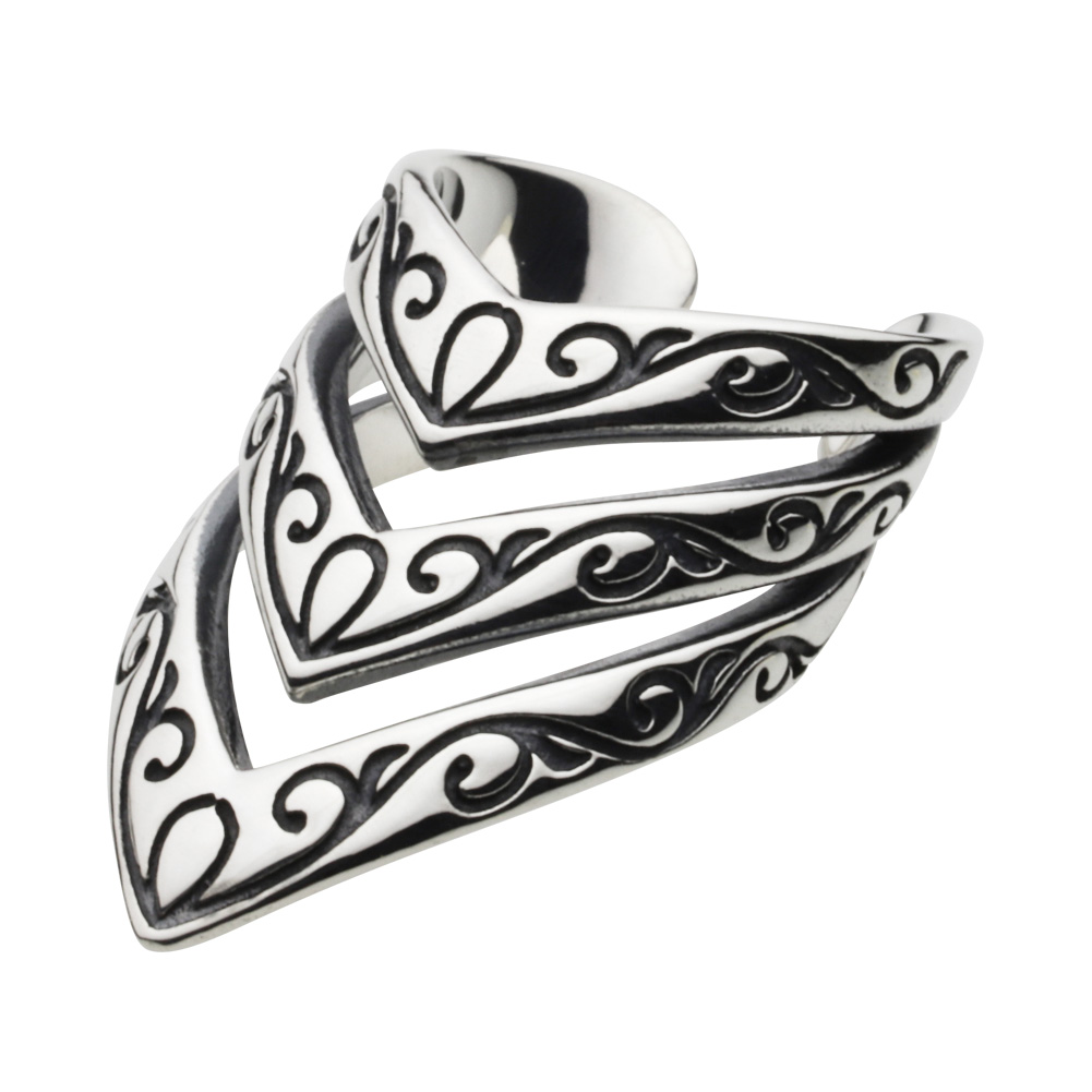 シルバーイヤーカフ メンズ アラベスク 唐草 3段 アーマー 3蓮 鎧 甲冑 大ぶり エッジ シルバー925 イヤーカフ シルバーアクセサリー e2092 收藏