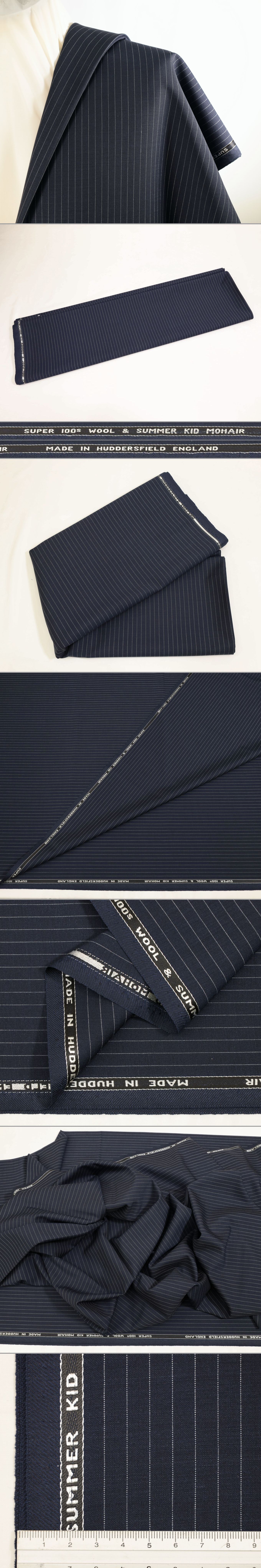 ★バウワーローバック社の高品質生地super100&skモヘア・美しい濃紺ペンシルストライプ・漢のビジネススーツ用・生地長さ3.4/3.2m 收藏