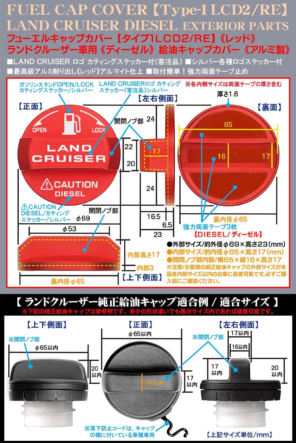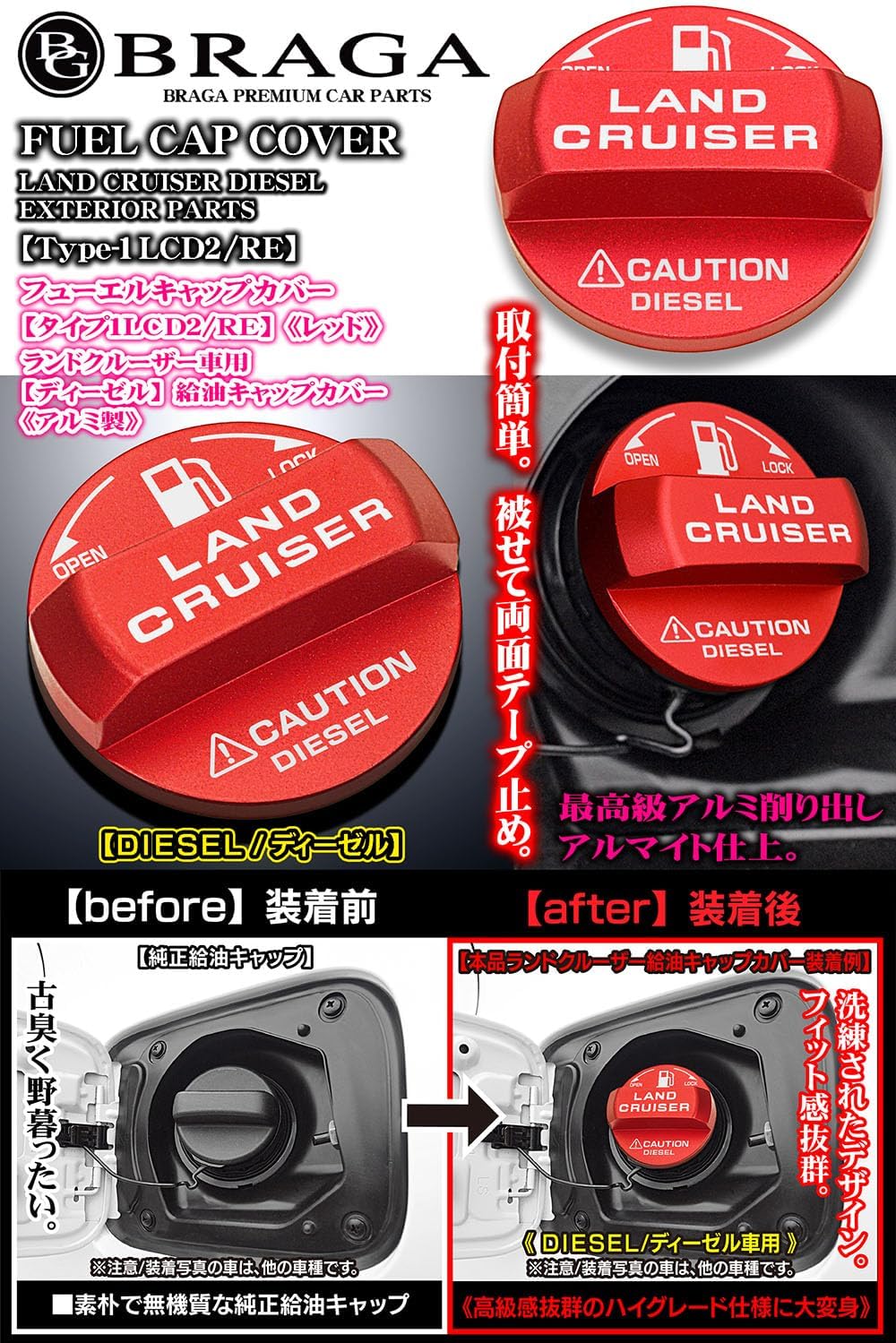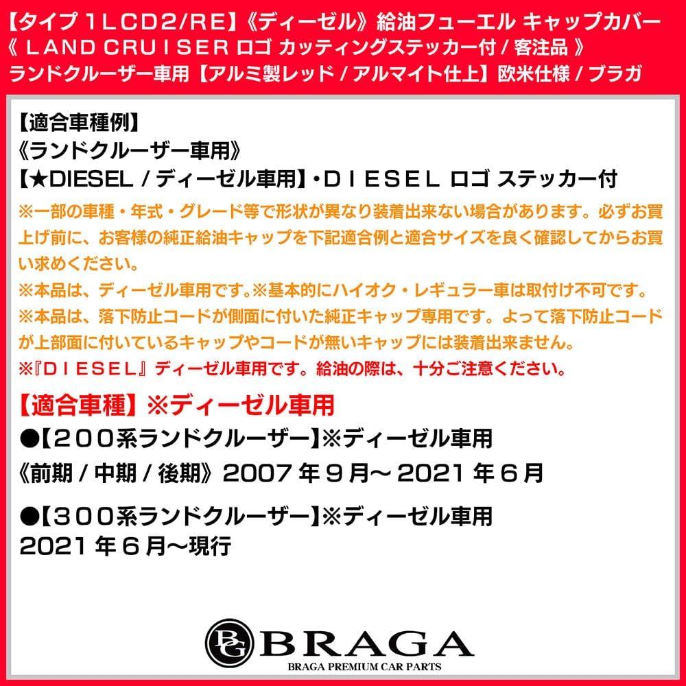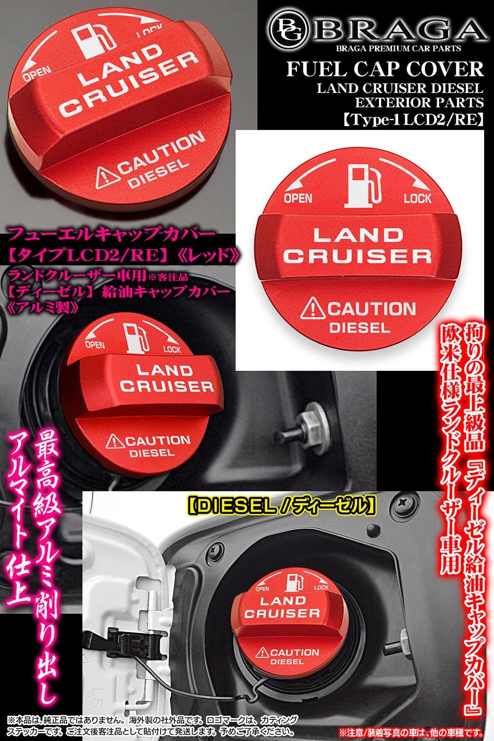 【タイプ1LCD2/RE】《LAND CRUISER ロゴ マーク付/ランドクルーザー車用》【ディーゼル2】 給油 フューエル キャップ カバー /アルミ製 レッド/アルマイト仕上/カッティング ステッカー付/客注品/欧米仕様/ブラガ BG BRAGA
