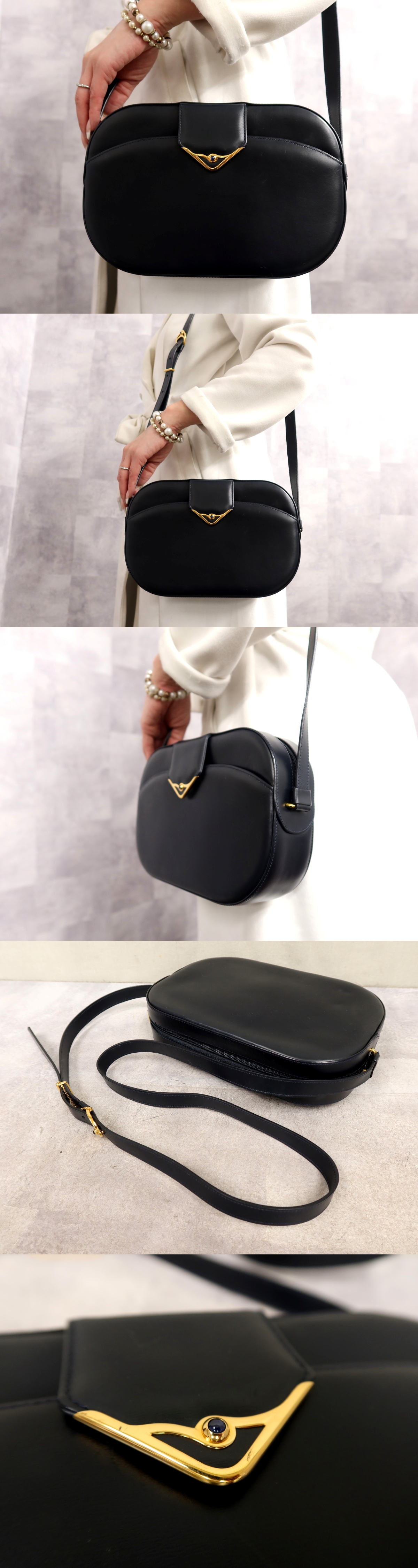 ●超美品●Cartier カルティエ●サファイアライン●カーフ レザー 本革●ショルダー バッグ●ダークネイビー●ゴールド金具●Js65442 收藏