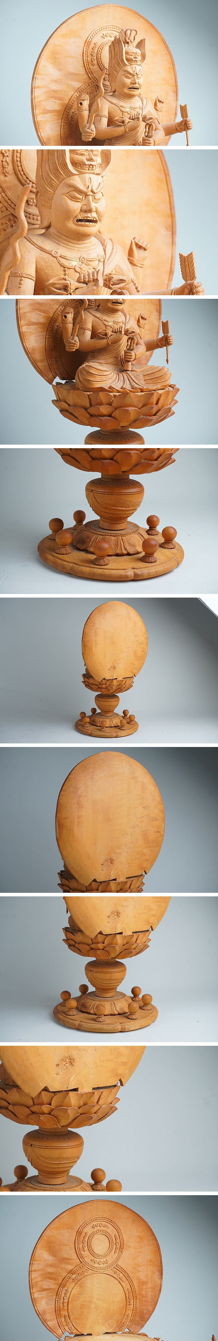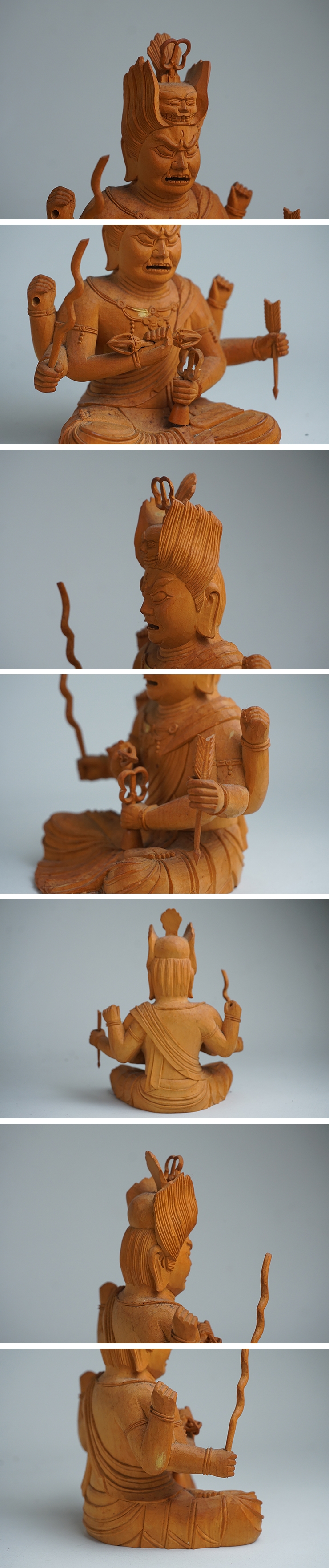 | 商品説明 | 細密彫り、愛染明王坐像です。 右手後ろの持ち物、花が無いようです。 他、目立つ傷はありません。背光はずれます。 宜しくお願いします。 全高24.3cm 巾後背部15.0cm 台径12.3cm 仏高11.5cm | |