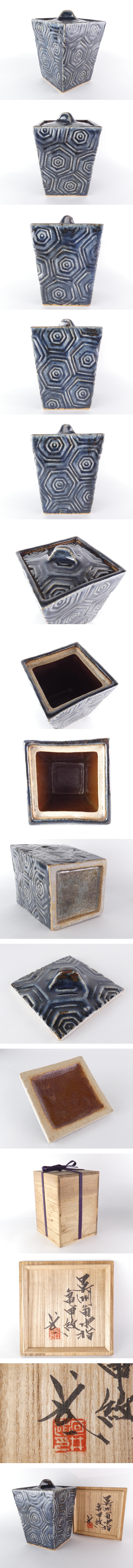 【都屋】河井武一「呉洲亀甲紋角水指」共箱 保証品 茶道具 K102 I-2 收藏