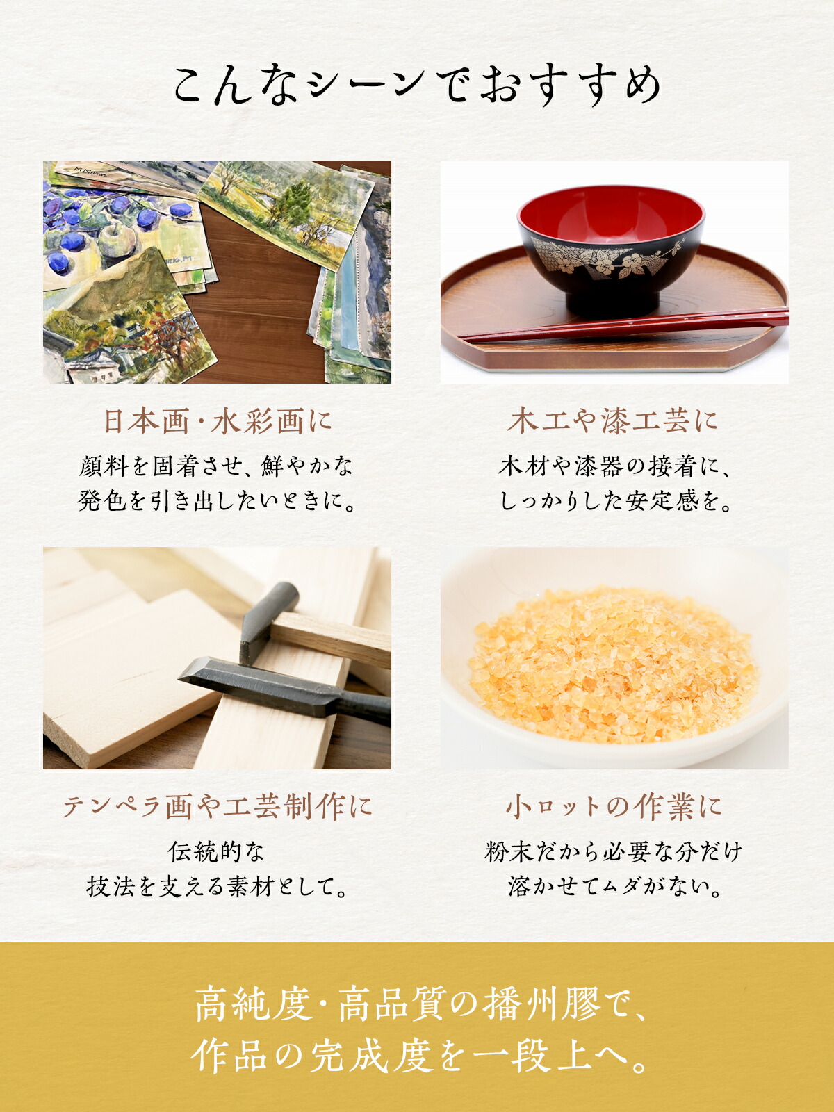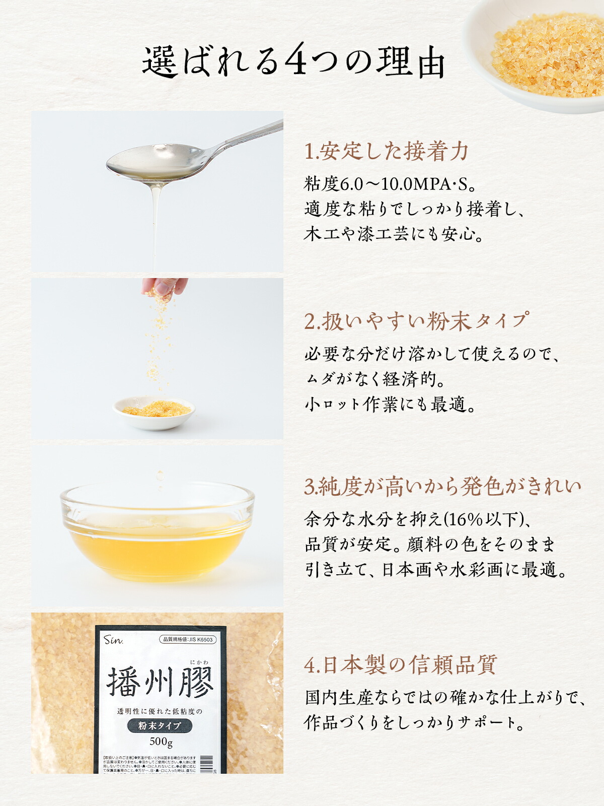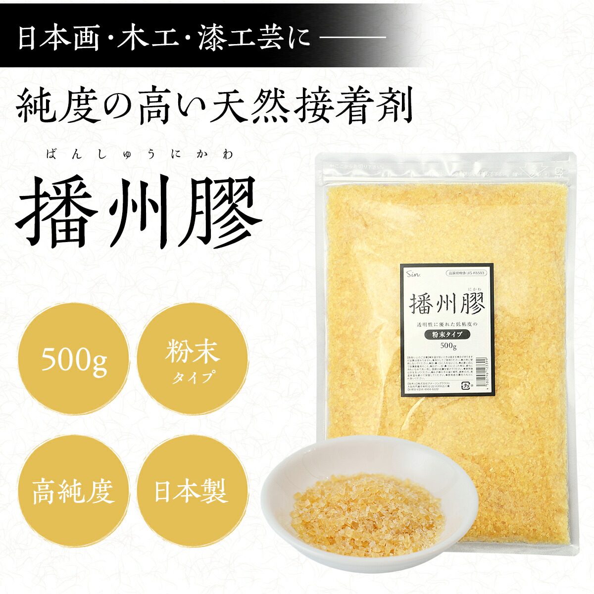 播州膠 500g にかわ ニカワ 粉 粉末 日本画 水彩画 絵具 テンペラ画 木工 漆工芸 用 接着剤 DIY 国産 收藏