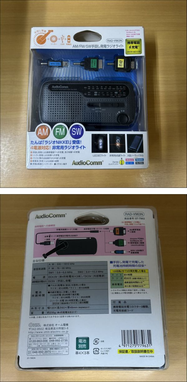 【開封/美品】 AudioComm オーディオコム RAD-V963N AM FM SW手回し発電 ラジオ ライト 【現状品】 收藏