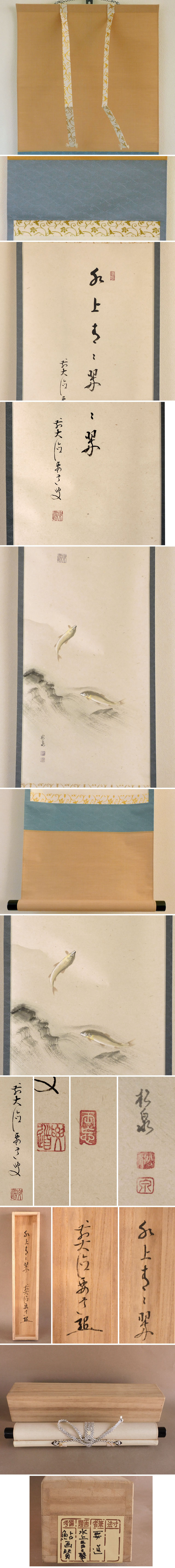 〈真作〉大徳寺 雪尾 要道 水上青々翠 鮎画賛 軸 收藏