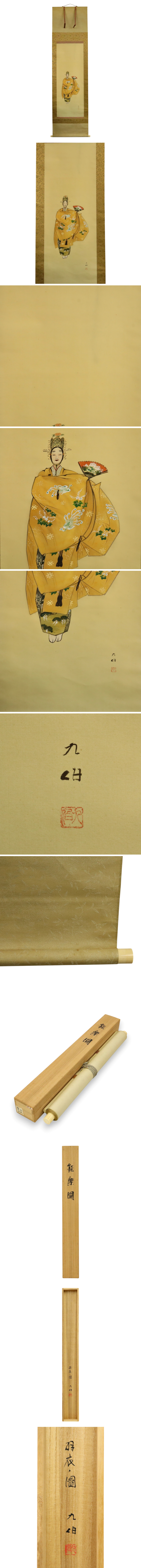 真作保証 高田九伯 「能楽図」 絹本 共箱 備後 掛軸 書画 骨董品 美術品 332103mqN 收藏