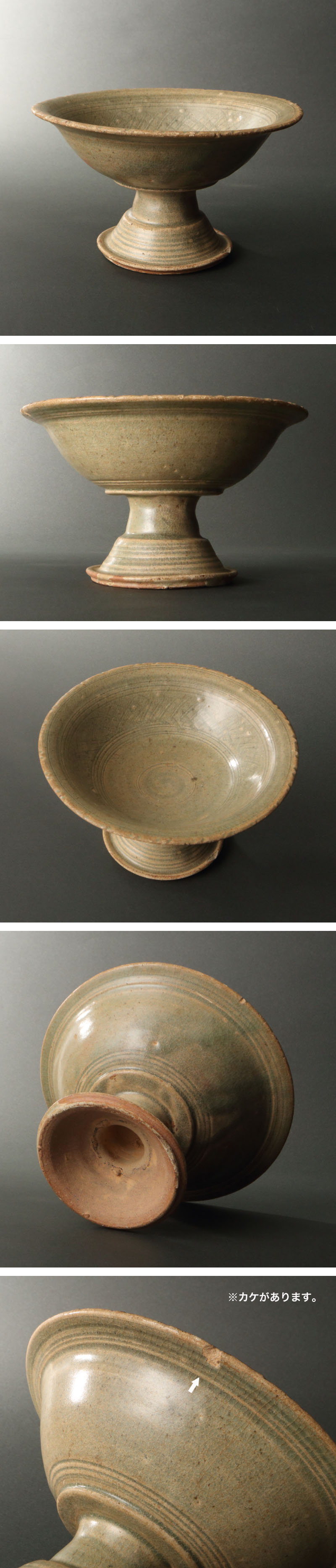 【深和】14~15世紀◆宋胡録青磁刻線文台鉢(茶道具 青瓷 スコータイ朝 スワンカローク窯 高坏 菓子器 祭器 仏教美術 中国古美術) 收藏