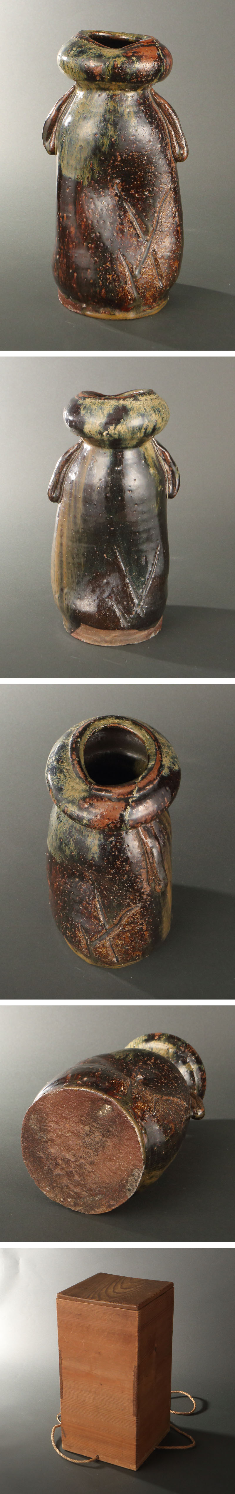 委託HK◇時代 古高取双耳花入(花器 高取焼 内ヶ磯窯 高取花入 朝鮮唐津 茶道具 花瓶 花生 福岡藩 藩窯 遠州流 遠州七窯) 收藏