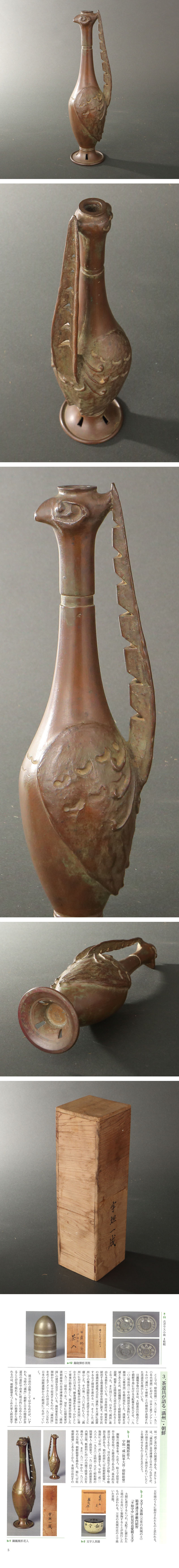 委託HK◇銅鳳凰形花入 朝鮮総督・宇垣一成箱書(茶道具 胡銅 花器 花瓶 鳳首瓶 雉子 置花入 帝国陸軍 日本軍 軍人 茶人 松永耳庵) 收藏