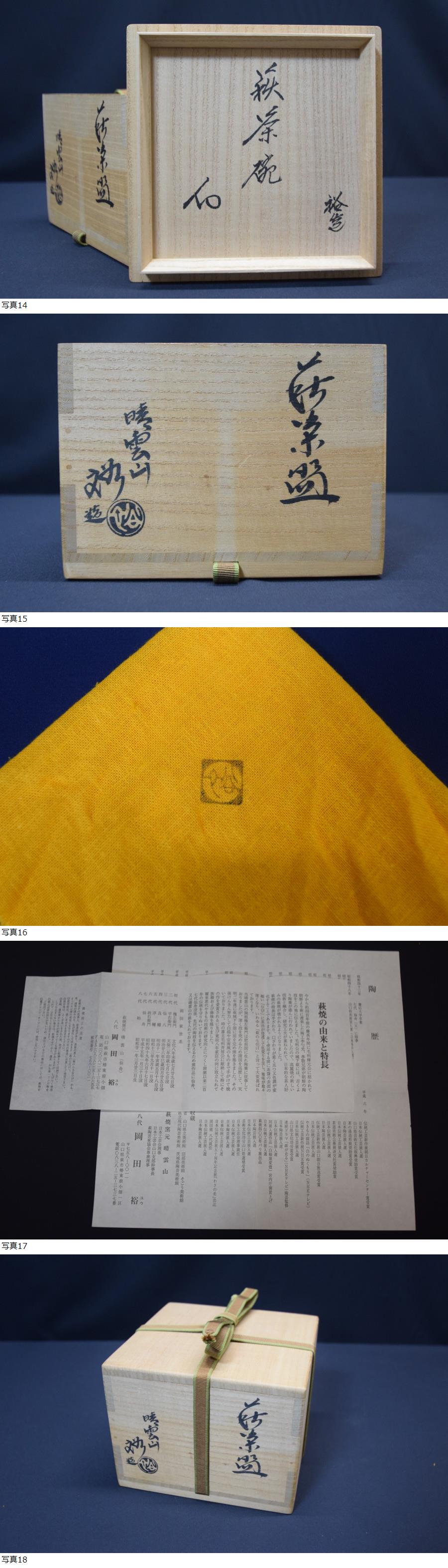 | 萩焼 晴雲山八代 「岡田裕」造 萩茶碗 裏千家 坐忘斎書付 共箱・共布 |