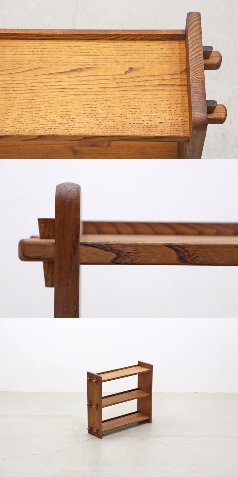 ◆飛騨 オークヴィレッジ 栗無垢材 楔 クサビ 本棚 シェルフ 飾り棚 ラック 書庫 収納 レトロ 2/ヴィンテージ古民家/RCT31236◆ 收藏