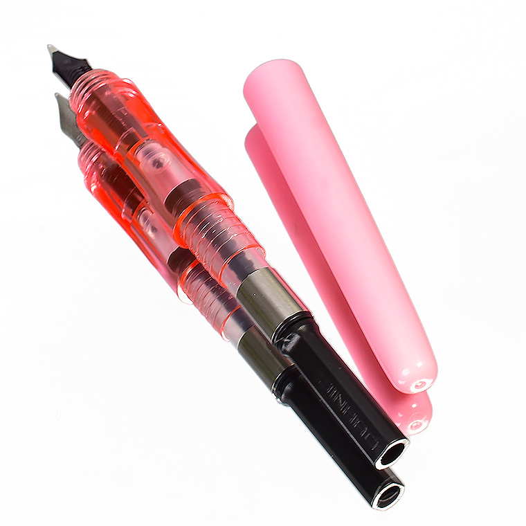 | 【JINHAO /ジンハオ】Shark Pen ―サメ万年筆 ― 遊び心と実用性をひとつに 今回の出品はライトピンク1本です ![]() キャップを外すと、思わず微笑んでしまう。 JINHAO(豪)の人気シリーズ「サメ万年筆」は、 その名の通りキャップがサメの姿をした、ちょっと不思議で、どこか愛嬌のある一本です。 なぜサメなのか――その理由は誰にも分かりません。。。 けれど、この“謎の可愛さ”こそが、手に取った人の心をつかむ魅力になっています。 ![]() <軽やかで扱いやすいプラスチックボディ> 軸とキャップは軽量なプラスチック製。 長時間の筆記でも手が疲れにくく、学生さんから大人まで気軽に使える設計です。 バッグやペンケースに放り込んでも気にならない、デイリーユースにぴったりの素材感。 ![]() <ステンレス製 Fニブ ― 細字でくっきり> ペン先は丈夫なステンレス製。 F(細字)らしいシャープな線が気持ちよく走り、ノートや手帳、書類にも相性抜群。 インクの乗りも安定していて、初めての万年筆としても安心して使えます。 ![]() <ネジ式キャップでしっかり安心?> キャップはネジ式。 持ち運びの際に外れにくく、ペン先をしっかり守ってくれます。 小さな工夫ですが、日常使いではこの“安心感”が大きな価値になります。 ![]() <三角形グリップで自然と正しい持ち方に> 首軸は三角形断面。 指が自然と正しい位置に収まり、長く書いても疲れにくい設計です。 書き心地の良さだけでなく、筆記姿勢を整えてくれる“やさしいガイド”のような存在。 ![]() <”かわいい"のに実用的”というギャップ> サメのキャップという遊び心と、しっかり書ける実用性。 このギャップが、サメ万年筆をただの文具ではなく、 「持っているだけで気分が上がる一本」にしています。 初めて万年筆を使ってみようかと思われる人には、エントリーモデルとして使って いただきたいアイテムです。 日常使いに1本いかがでしょうか、 ![]() *こちらはイメージ画像* セット販売ではございません ****************************************************** <詳細> JINHAO Shark Pen 万年筆 ライトピンク ペン先 : ステンレス サイズ : F(細字) 機構 : コンバーター/カートリッジ両用式 (口径:2.6mmが適合します) 長さ : 約154mm 太さ : 約8mm~13.5mm 重さ : 約10g 付属品 : 発送用簡易ケース・コンバーター・適合カートリッジ2本 新品未使用 ※付属のカートリッジ2.6mmは当店でも別途販売中 ****************************************************** |