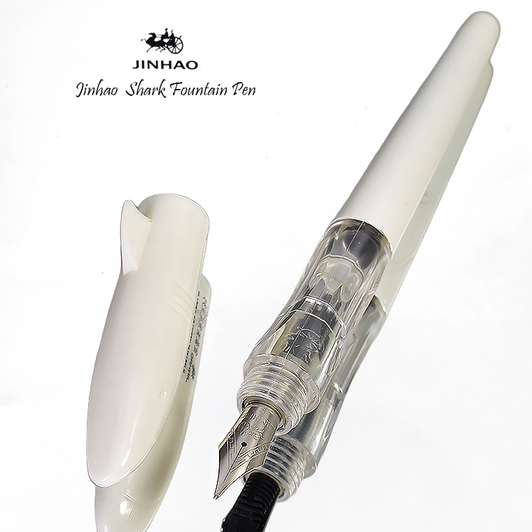 ■▲万年筆【JINHAO/金豪】サメ万年筆 Shark pen ホワイト 白 三角形グリップ F (細字) 軽量 謎の可愛さ 遊び心と実用性 お買い得 /JH98WH 收藏