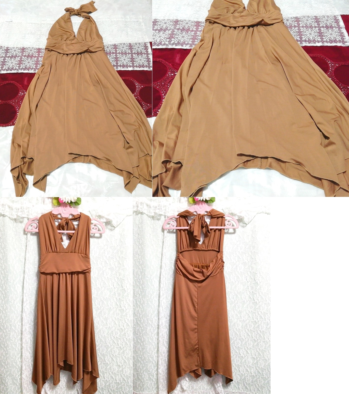 茶色無地背中空きノースリーブ ネグリジェ ナイトウェア ハーフワンピース Brown plain backless sleeveless negligee nightwear dress 收藏
