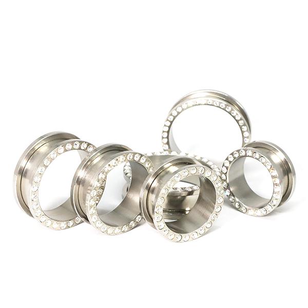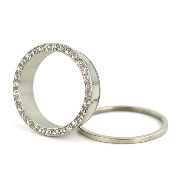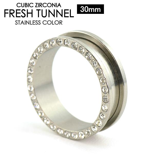 フレッシュ トンネル ラインストーン仕様 30mm サージカルステンレス316L ボディーピアス クリアジュエル付 ゴージャス イヤーロブ 30ミリ