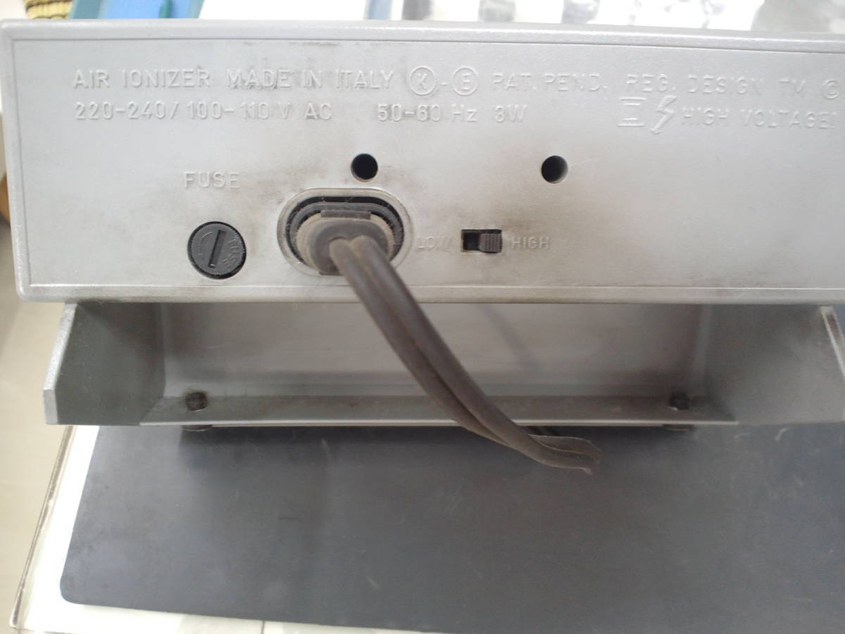 くわしくは「マイナスイオン発生器 オアシス」 発生量が強力のため設置周囲が汚れるため手放します。 2枚目のように本体設置周囲に吸着し黒ずんできます マイナス帯電した物質を引き寄せる作用が強いということですが写真のように設置周囲の白い部分が目立って確実に汚れますので注意下さい。イオン発生針は汚れますので極柔らかいナイロン歯ブラシ等でやさしく清掃が必要です。説明書無し。本体のみのお渡しです。中古現状了解の方のみでお願いします。