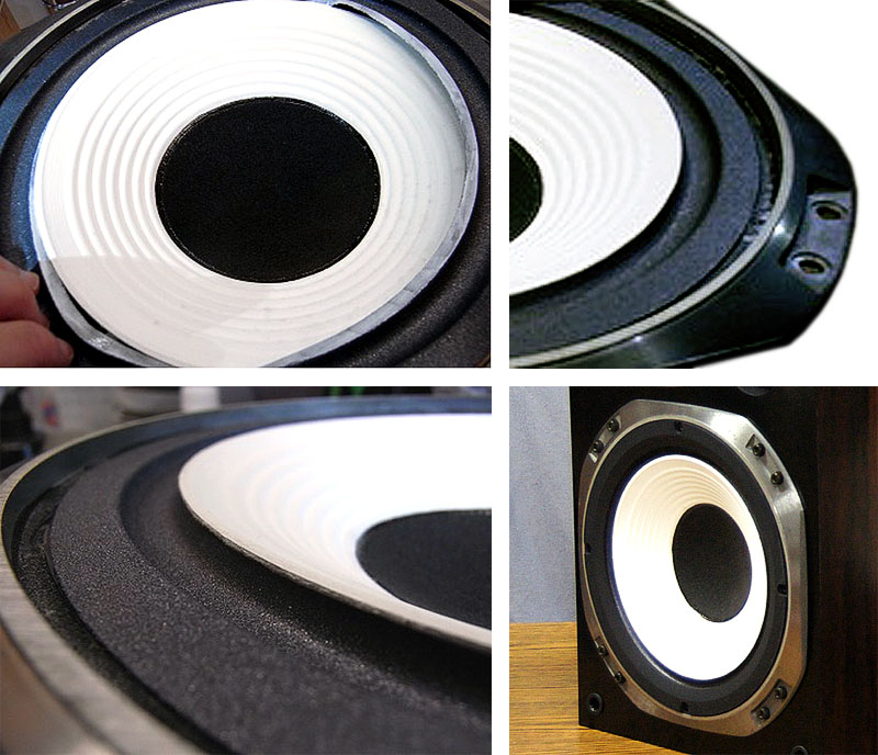お使いのスピーカーのエッジは大丈夫ですか? まだ音が鳴っているとはいえ、エッジが劣化しているユニットをそのままの状態で鳴らし続けますと、 ボイスコイルを傷め、その後コイルが切れてしまい、最後には完全に鳴らなくなってしまいます。 低音が歪み、使用出来なくなったスピーカーを この機会に復活させてください! |