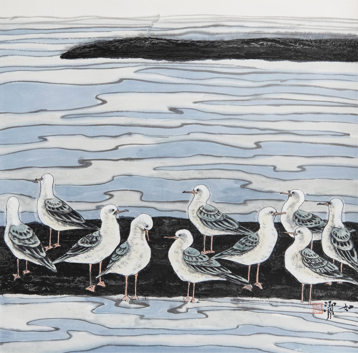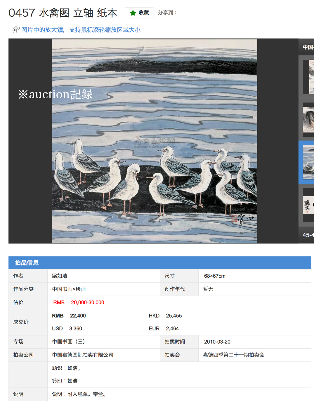 梁如潔 90年代初期作 水禽図 立軸 中国嘉德拍賣出品作 真作保証 梁如洁 中国 近現代絵画 現代アート 收藏