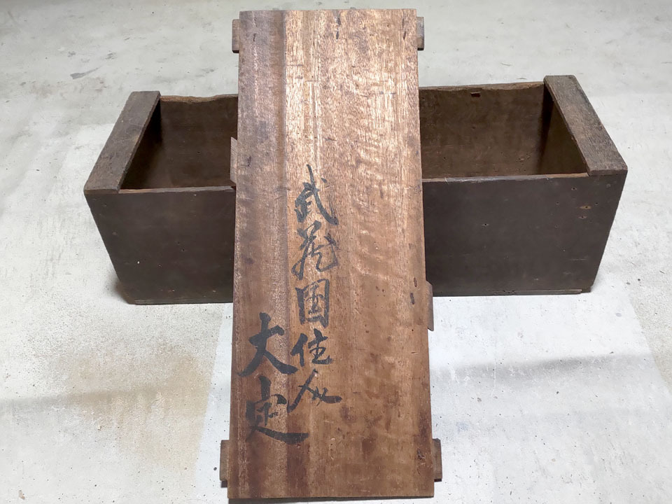 ■ホコリやごみが付いておりブロアーで吹いたのですが、完全に取りきれません。汚れ、染み等も多数あります。写真にてご確認ください。裏蓋と内側に墨で文字が書かれています。おそらく祖父の屋号かと思われます。