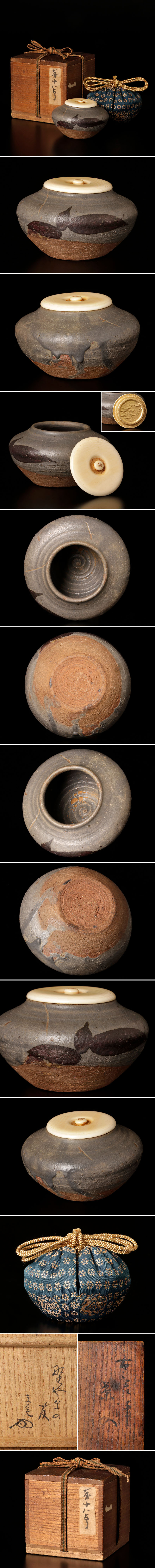 素朴で落ち着きのある佇まいが味わい深い古唐津の茶入です。 仕覆1枚(逢坂金襴)付属いたします。 ★商品は堀内宗完(不仙斎)書付の作品である事を保証致します。 |