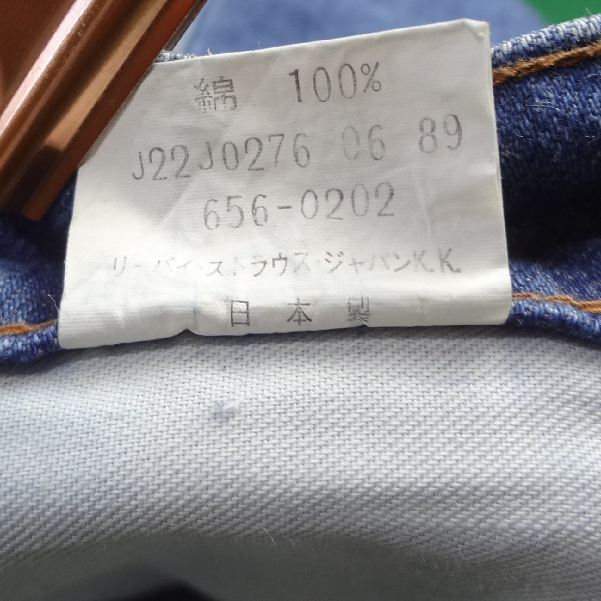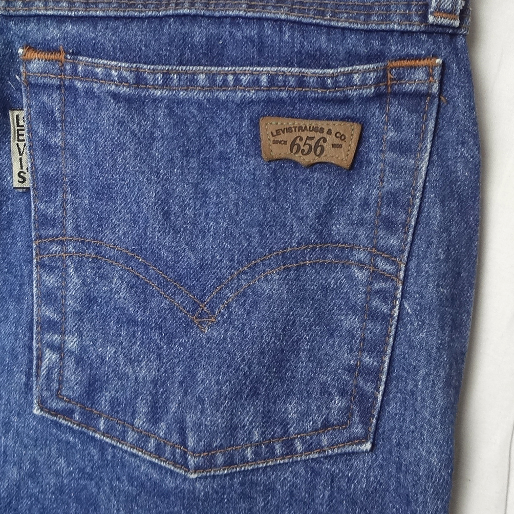 リーバイスの日本製656スリムジーンズ、実店舗の店頭展示品を一度洗濯しただけの未使用品、1989年6月製造インディゴブルーデニム綿100%