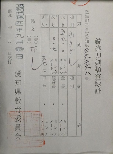 | 備考 | ※銃砲刀剣類所持等取締法により 都道府県の教育委員会へ所有者変更の届出が必要です。 落札後、変更届出をよろしくお願い申し上げます。 |