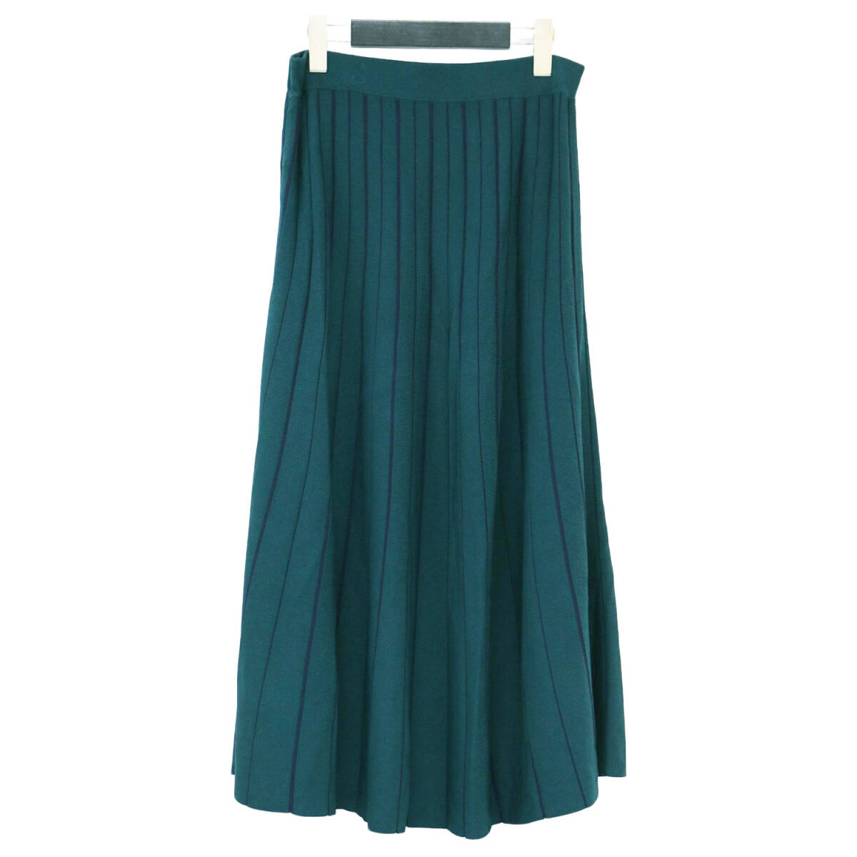 【美品】J.PRESS ジェイプレス スカート グリーン 9(M) / レーヨン エリート ストレッチ ニット スカート / ミディ フレア ストライプ 收藏
