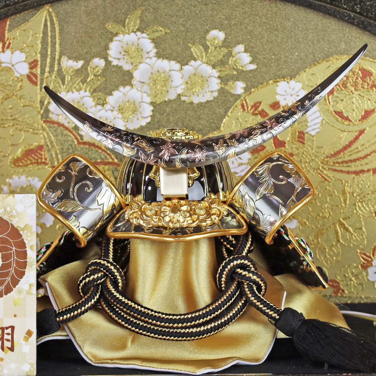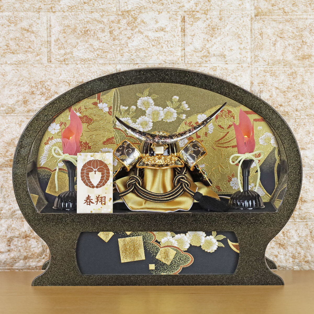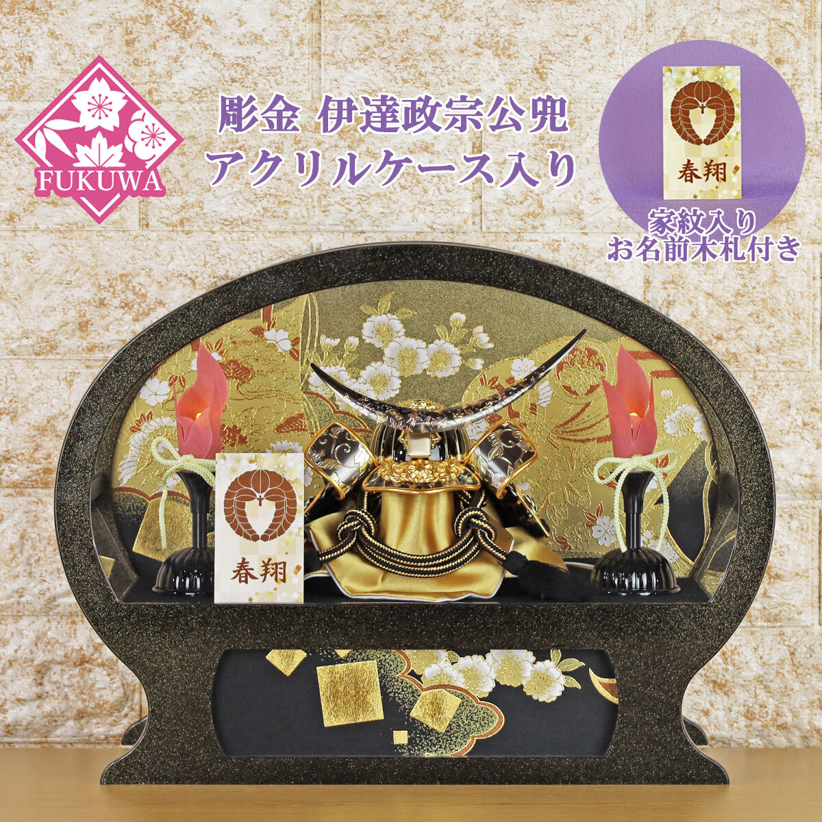 五月人形 兜飾り コンパクト おしゃれ モダン(5号 彫金 伊達政宗 竜雅 兜 金ラメ 丸型 アクリル ケース入り R7-K-115) 円型 家紋 收藏