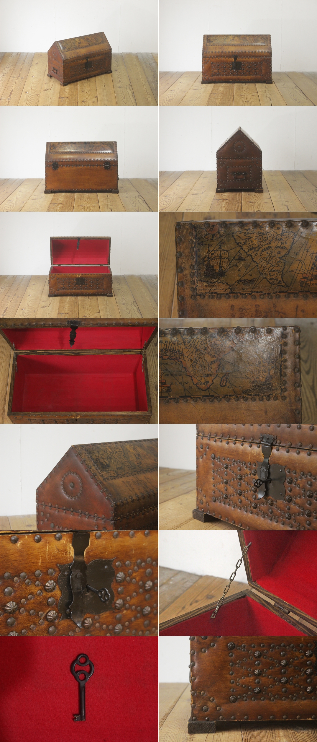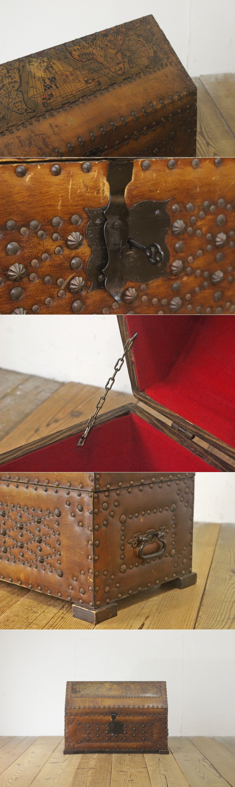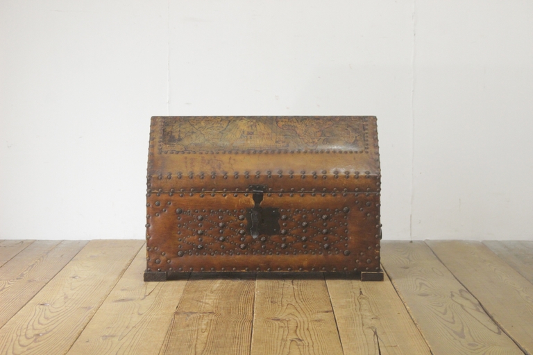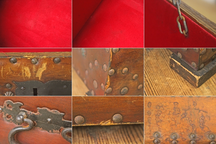 ヴィンテージ 本革収納ケース 衣装箱 トレジャーボックス BOX 鍵付き レザー ラック ディスプレイ/U.S.アンティーク英国洋館/PET27159 收藏