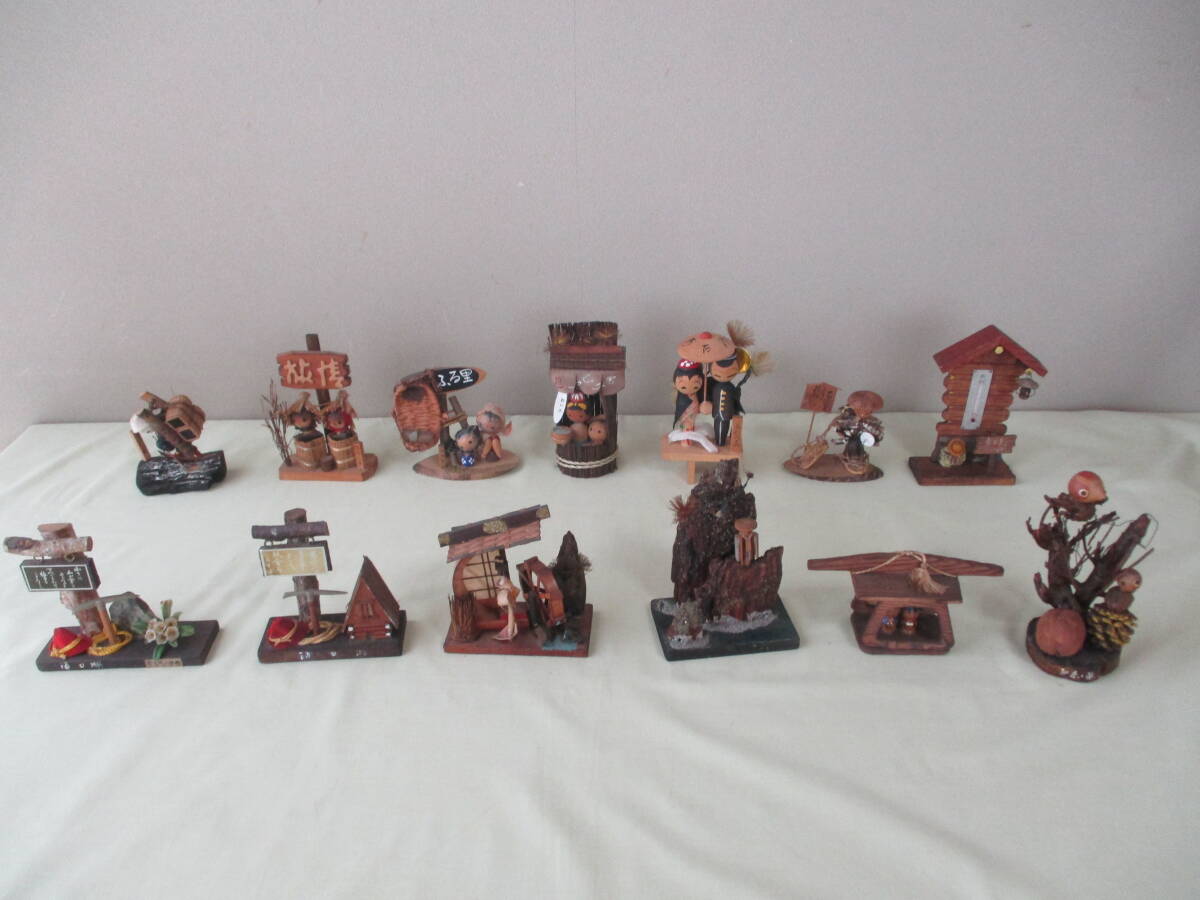 木製の民芸品(13個セット): 温度計1個・土産品・昭和レトロ・インテリア・郷土玩具 收藏