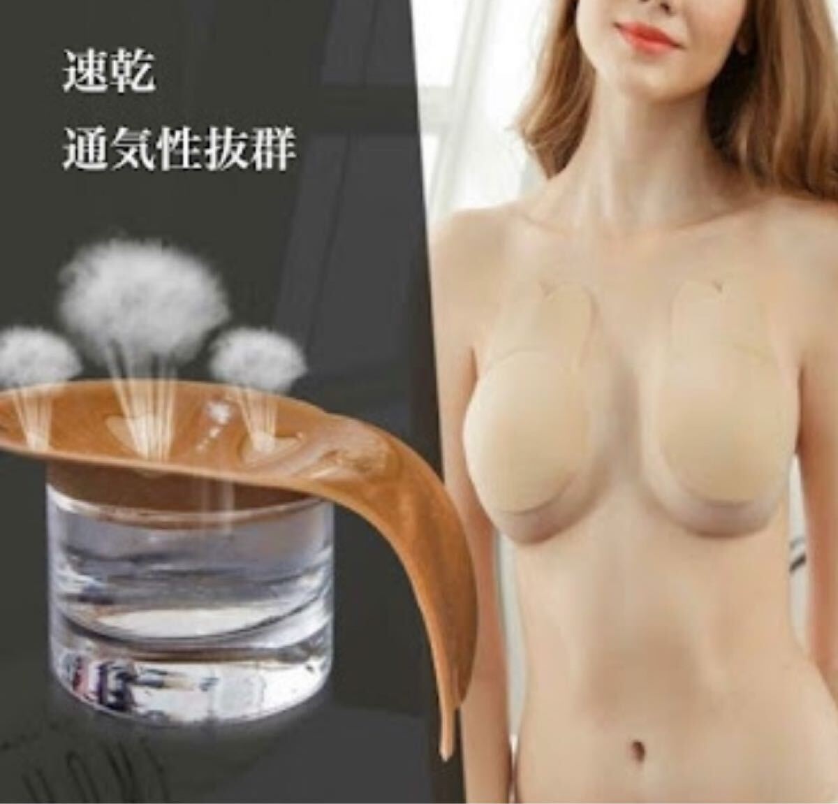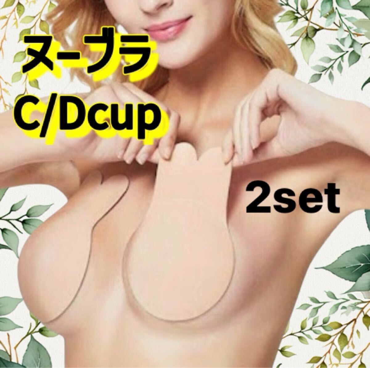 ヌードブラ 薄型 通気性 軽量 ニップレス付 ベージュ C/Dカップ 2set 收藏