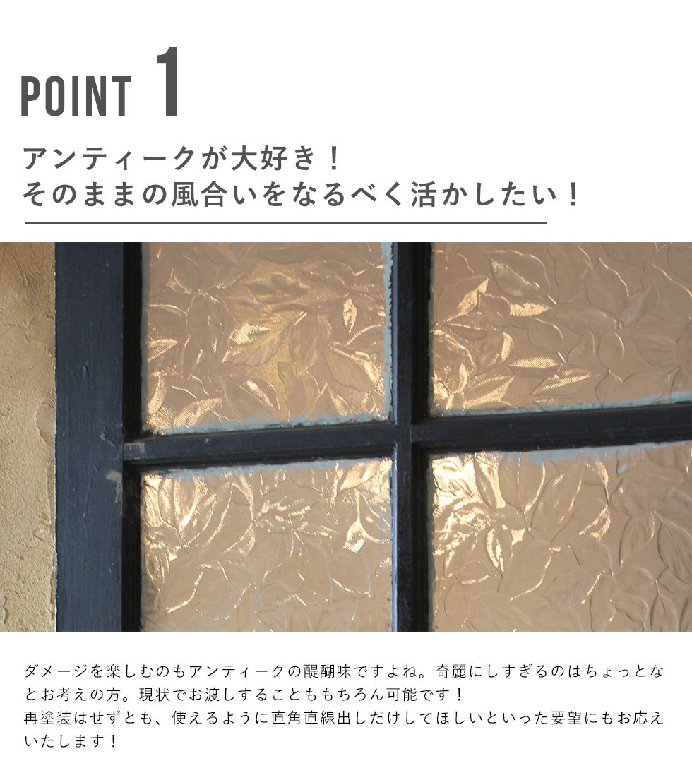 イギリス、フランスを中心にヨーロッパ中から直接買い付けをした本場のアンティーク品となります。 高級なイメージのアンティークですが、当店ではリーズナブルにアンティークをお楽しみい頂けるよう、ステンドグラスは一度に1,000枚以上。アンティークドアも100枚以上を一度に輸入。 全国でも有数の買い付け量を誇ります。 創業以来現在の買い付け量を保つ事で、現地ディーラーとの密な信頼関係を構築。当社に向けてより良い物を提供してもらえる環境作りを維持し、現在では現地取引先約20社と提携しています。 また当店ではアンティークのプロフェッショナルが常駐する工房を完備。修理、メンテナンスはもちろん、ステンドグラス、ドアの制作からカスタムまで、アンティークのご相談はウェリントンにお任せください。 ネットに載っていない商品もまだまだございます。京都伏見のショールームにも是非お越しくださいませ。 ※修理に関するご注意※ ■ 標準修理に関しては別途料金にて承ります。事前に仕上がりサイズを必ずご確認くださいませ。 ■ 標準修理をご依頼の場合、決済確認後の着手となります。恐れ入りますが代引きでのご決済はお断りしております。 |