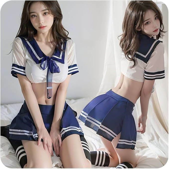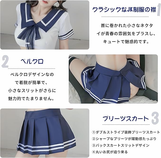 46 制服 5点セット コスプレ セーラー服 JK風 セクシー ランジェリー レディース 過激 可愛い 青白 スリットスカート 半袖 Tバック 收藏