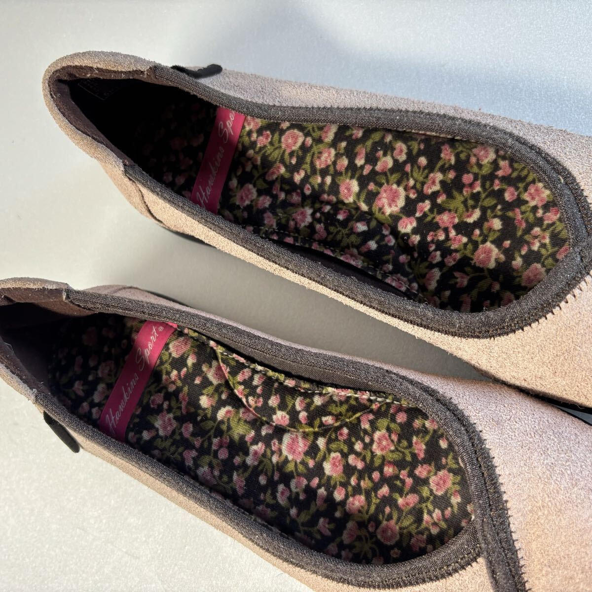 スエード素材のグレーのフラットシューズ、花柄インソール付き。| 出价者 | 信用 | 价格 | 时间 |