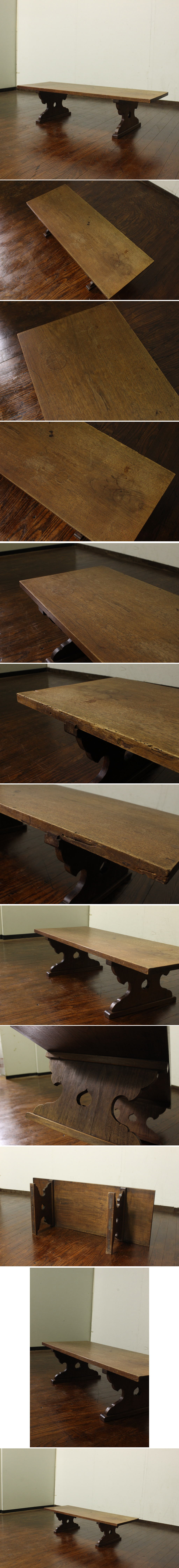 アンティーク・レトロ!一枚板 古い栗材の木製机 店舗什器 文机 展示台 座卓 経机 ローテーブル 花台 前机 ローボード 收藏