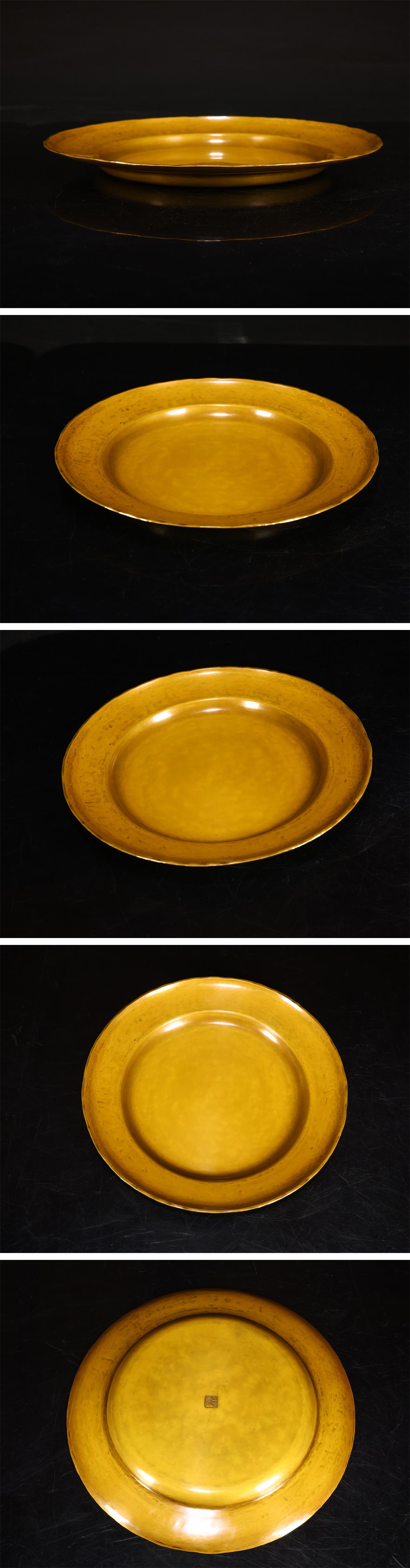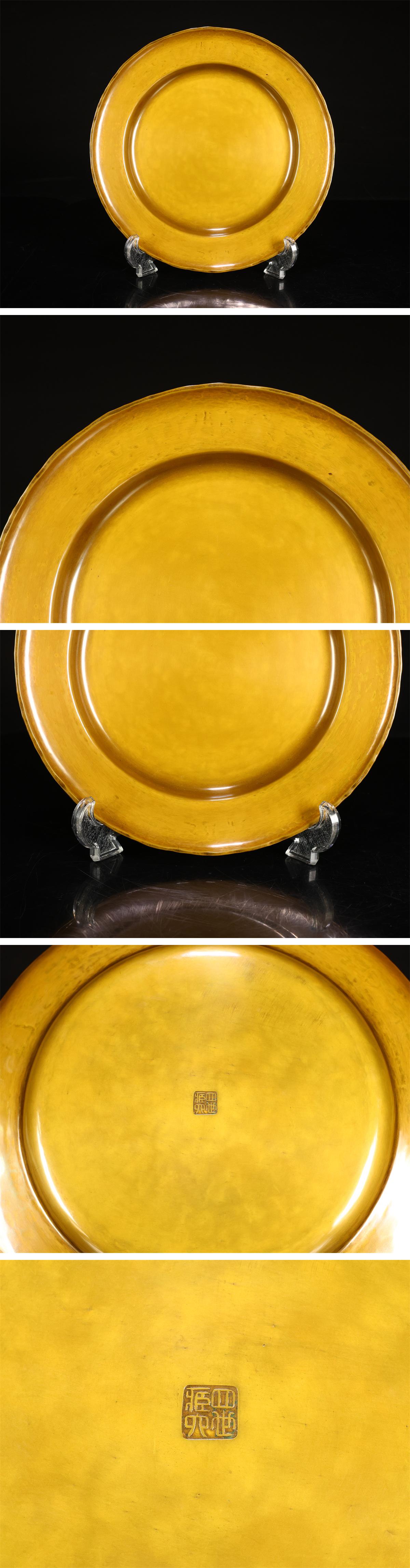 【吉】DA839 平安 【四世 秦蔵六造】 黄銅菓子器 青海盆 径23㎝ 重309g/共箱付 本物保証 美品! 收藏