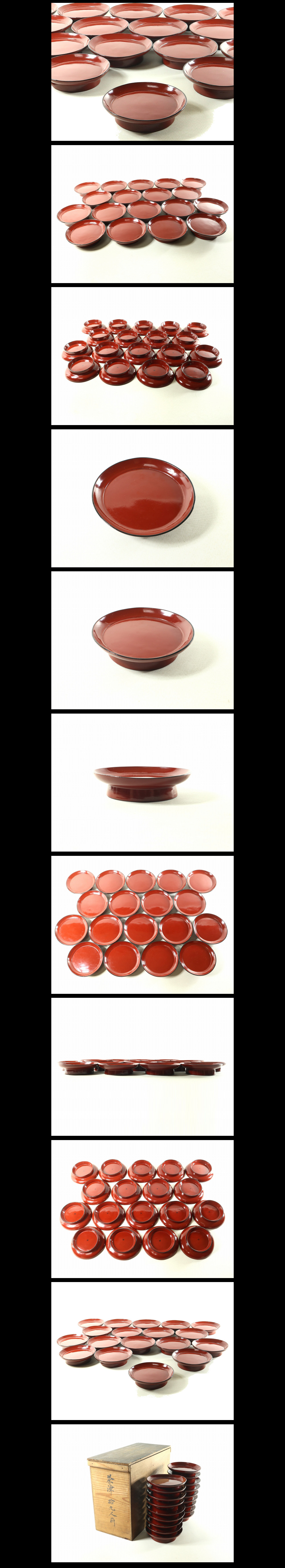 ●c054●時代【日野椀茶津18客 濃朱黒縁/椿皿高台菓子皿木皿】検わびさびお茶会煎茶道具茶懐石道具根来朽木盆●西瓜●