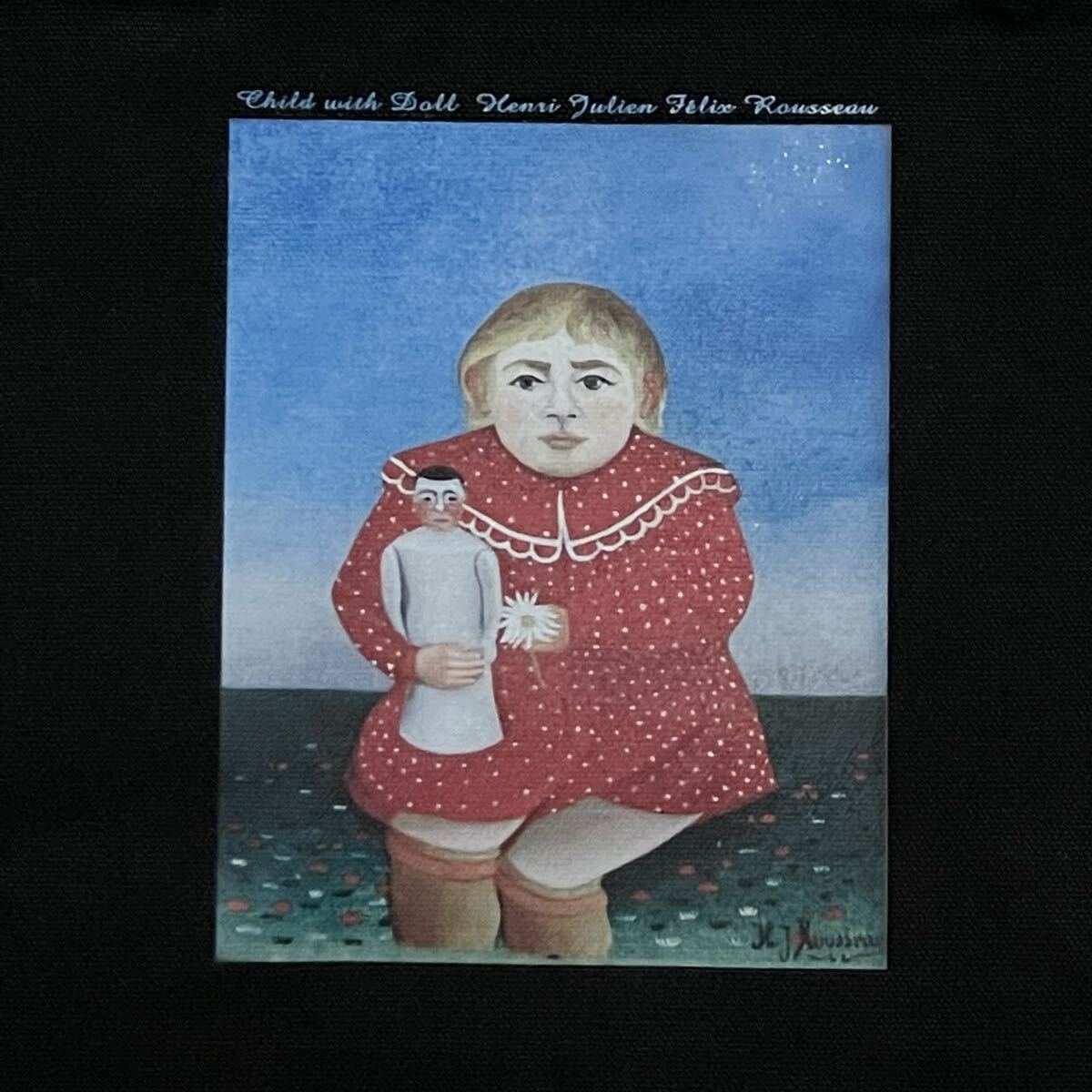 アンリ・ルソーの、人形を持つ子供 の絵を美しくプリントした、綿12オンスキャンバス生地のトートバッグ、Sサイズ、黒、内ポケット付き| 出价者 | 信用 | 价格 | 时间 |