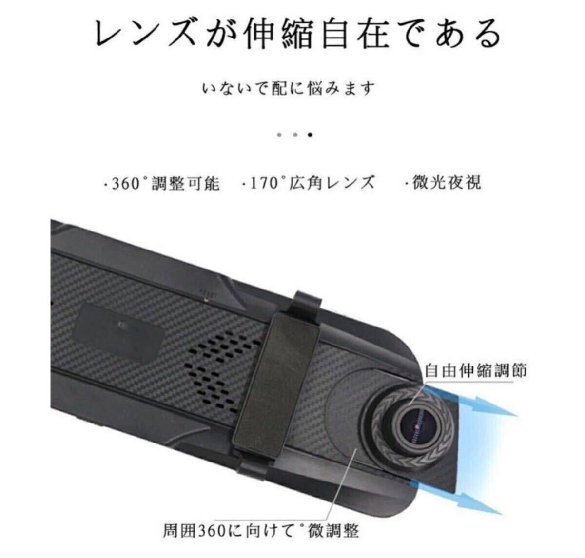 150度のリアカメラ:本製品のリアカメラは従来のルームミラーと比べ視界がより広い、万が一の追突事故などでもしっかり詳細を録画してくれます。